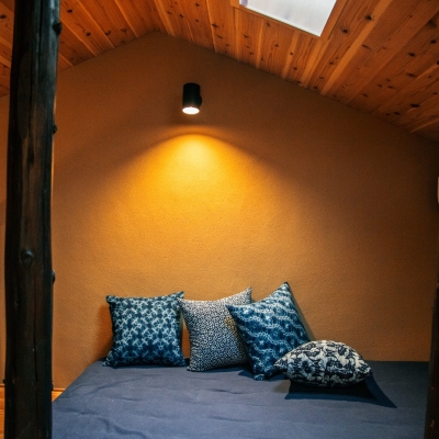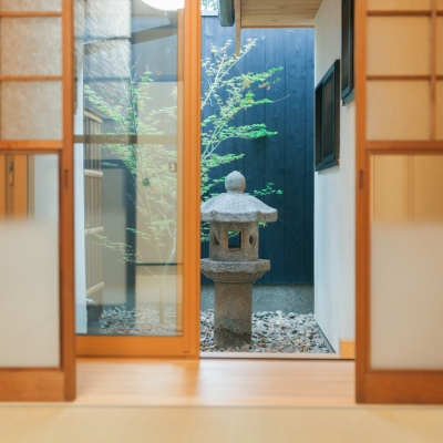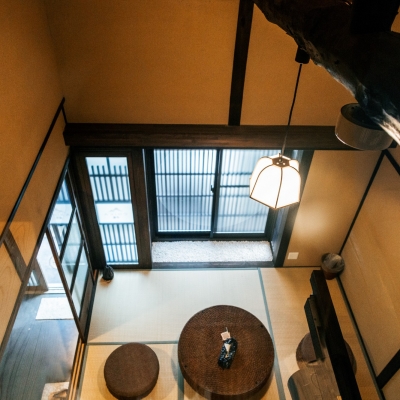 寝室は2つ。リビングに隣接するお部屋にはちょっぴりモダンなベッドを1台。もうひとつの和室には3組のお布団でお休みいただけます。朝は障子を通した優しい光でお目覚めください。