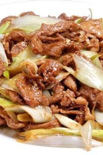 ラム肉とネギ炒め