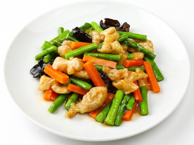 鶏肉とアスパラ醤油炒め